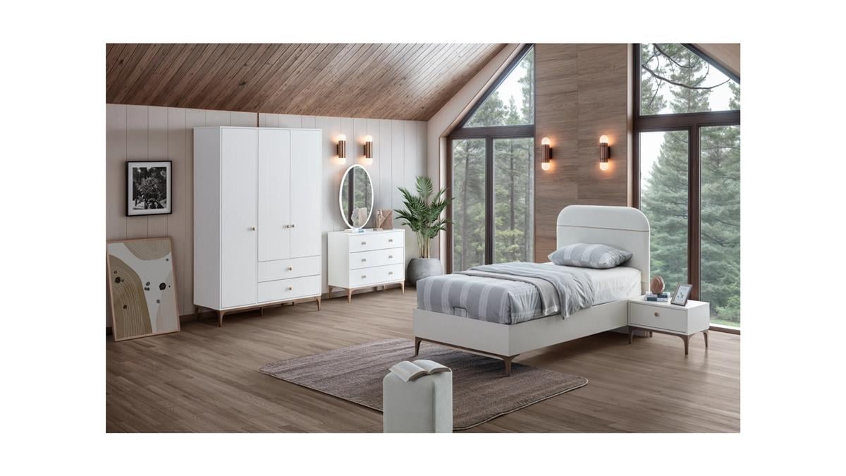 Polo Genç Odası Takımı, gençliğin enerjisine eşlik eden sade ama karakterli bir tasarımla gelir. Ders çalışılan, müzik dinlenen, hayal kurulan ve bazen sadece sessizce düşünülen bir odanın tüm ritmine uyum sağlar. Düzenli bir masa, fonksiyonel depolama alanları ve stil sahibi detaylarla gençliğin temposuna ayak uydurur.